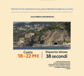 - in virtù delle norme tecniche di costruzione delle strade, l’uscita della galleria sul tratto di Minori non potrà essere “a gomito” come richiesto dal Sindaco di Minori ma necessariamente dovrà prevedere un’uscita a più ampio raggio; a titolo di esempio, si consideri che le gallerie “Porta Ovest” di Salerno – pur concluse dopo oltre 10 anni di lavori – non sono aperte al traffico in assenza di “rampe” idonee sul tratto “caselli autostradali”;